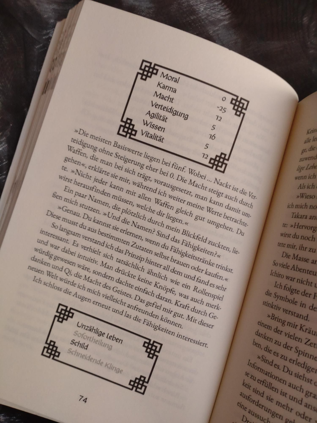 Mit dem Namen Azami startet sie einen Neuanfang als die Auserwählte in Xiandaris. Eine Welt tödlicher Schönheit erwartet sie, die sie an ein japanisches Rollenspiel erinnert.