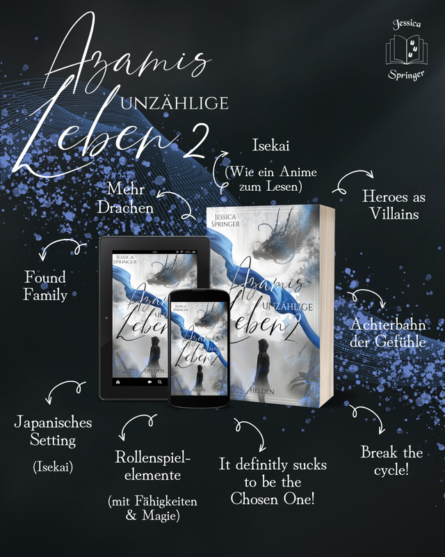 Den vorläufigen Klappentext findet ihr auf meiner Website unter Azamis unzählige Leben | Jessica Springer Autorin